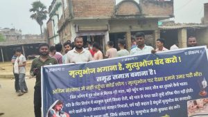 हसनपुर प्रखंड के बड़गांव गांव स्थित शिव मंदिर के प्रांगण में मृत्यु भोज , नशा मुक्ति अभियान व ध्वनि प्रदूषण को ले हुई ग्रामीणों की एक महत्वपूर्ण बैठक।